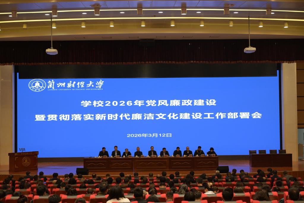 为深入贯彻落实中央纪委、省纪委五次全会精神及全省新时代廉洁文化建设工作动员部署会、教育系统全面从严治党会议要求,扎实推进学校党风廉政建设和新时代廉洁文化建设走深走实,3月12日下午,兰州财经大学2026年党风廉政建设暨贯彻落实新时代廉洁文化建设工作部署会议在和平校区兴隆讲堂举行。校党委书记王光亚出席会议并讲话,校党委副书记、校长陈冲主持会议,校纪委书记刘杰作了纪委工作报告,校领导滕宗骞、李万红、苏孜、景宗刚、管新帅、黄恒君,校党委常委、党委组织部部长唐莉出席会议。
